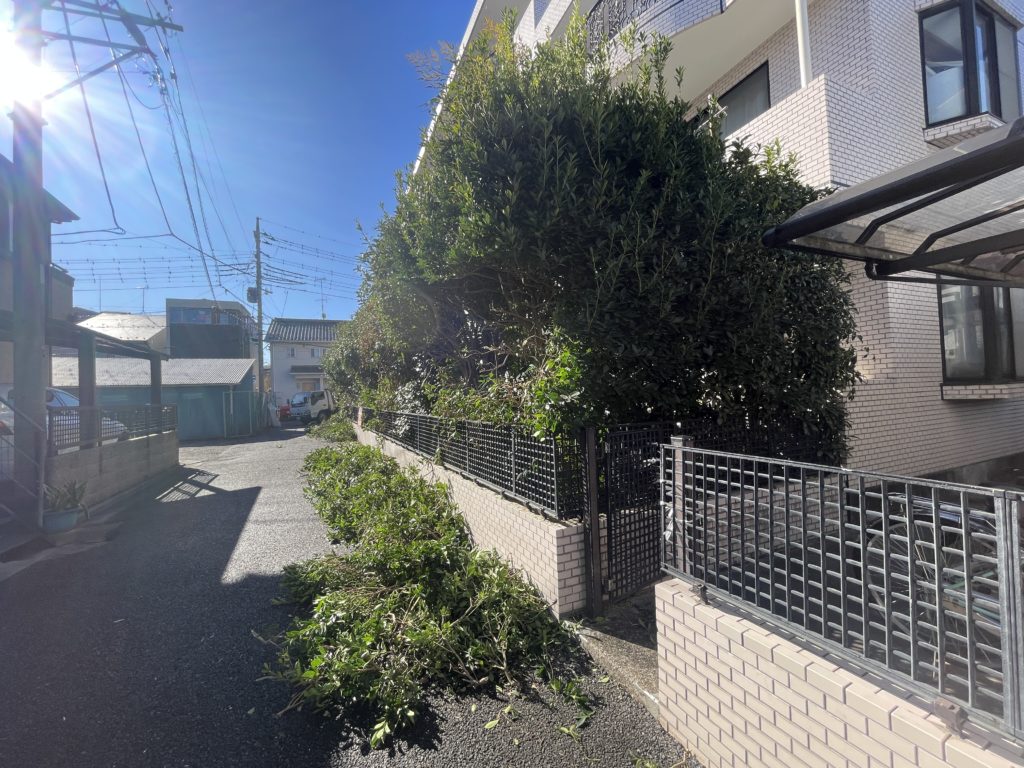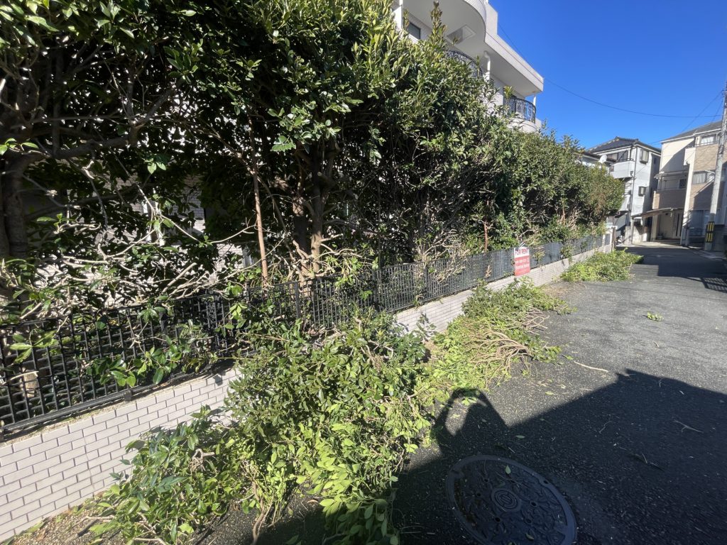 川越市のマンションにて敷地内植栽の剪定を行いました!
