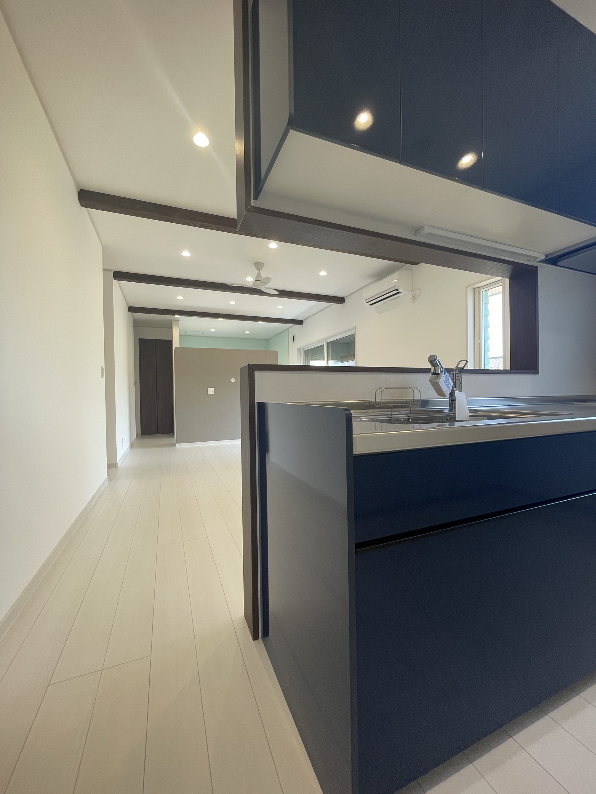 リビングは、開放感と落ち着きが共存する設計。家具や照明はシンプルながらも上質なものを選び、空間全体に統一感と洗練された印象を与えています。キッチンや水回りも、使いやすさと美しさを両立させたデザインで、暮らしの中に自然と調和する心地よさを感じられる仕上がりです。